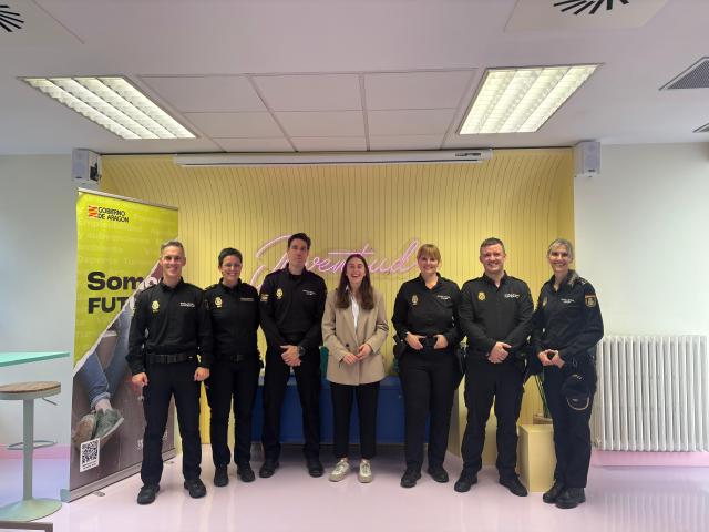 Los agentes de la Policía Nacional y la gerente del IAJ, minutos antes de comenzar la actividadGobierno de Aragón
