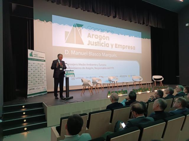El consejero de Medio Ambiente y Turismo del Gobierno de Aragón, Manuel Blasco, ha asistido este jueves a la inauguración del congreso Aragón, Justicia y Empresa, organizado por CEPYME Teruel en el Centro Sociocultural San Julián. El encuentro reúne a representantes institucionales, expertos jurídicos y profesionales del ámbito empresarial.