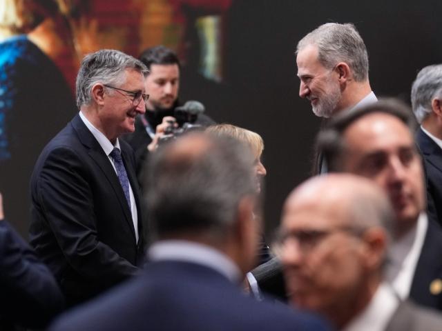 El consejero de Medio Ambiente y Turismo, Manuel Blasco, ha acudido al tradicional encuentro con el Rey Felipe VI durante esta segunda jornada de la feria internacional de turismo