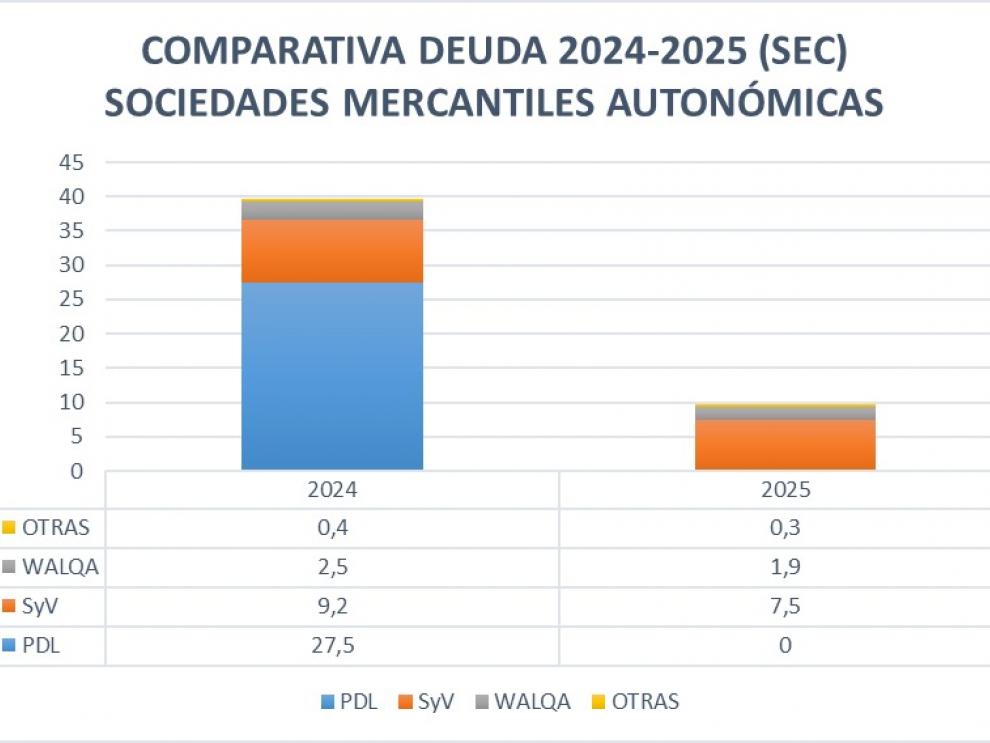 Comparativa de la deuda de las sociedades mercantiles.