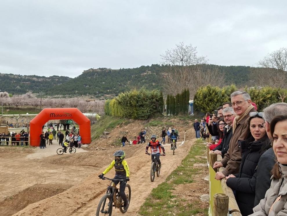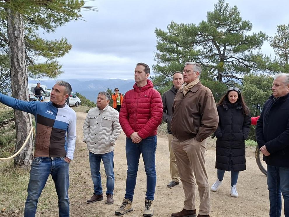 Blasco, el subdelegado del gobierno en Teruel, y el presidente de la comarca, entre otras autoridades, en Bike Park.