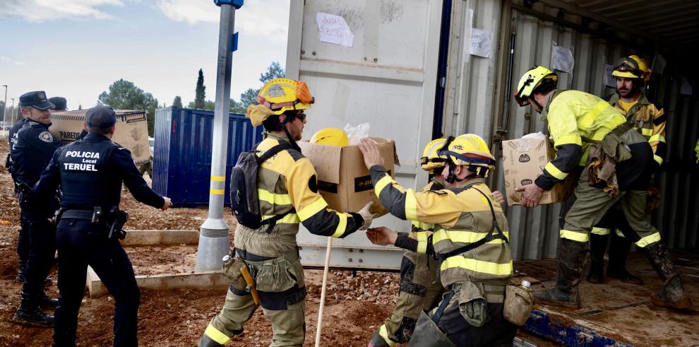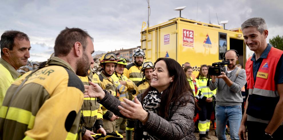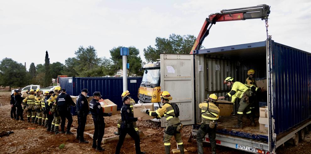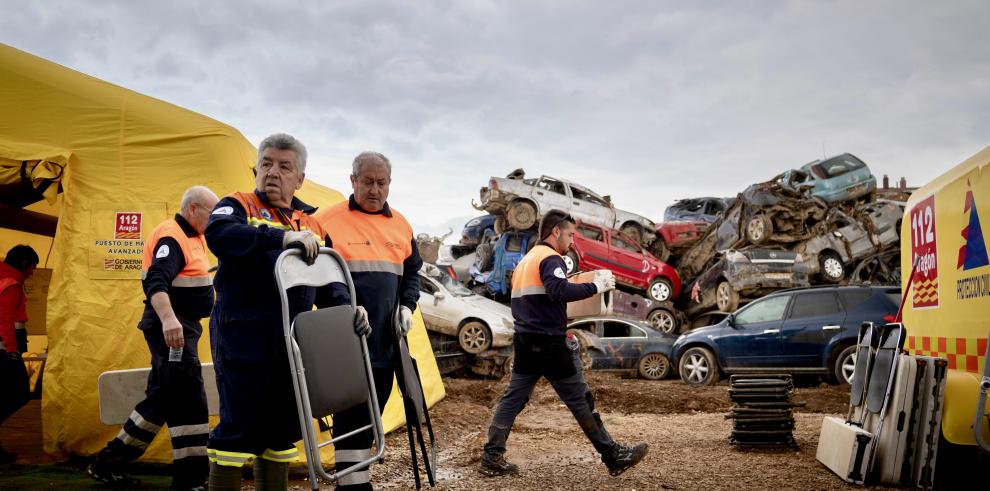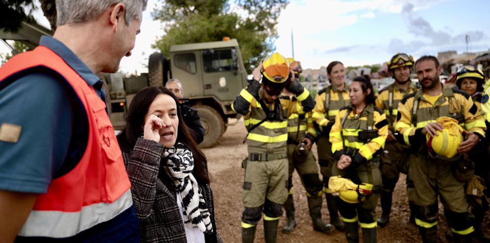 repliegue del Puesto de Mando Avanzado en Catarroja, de la limpieza de calles una vez despejadas y de Lorena Silvent, alcaldesa de Catarroja, despidiendo al contingente aragonés