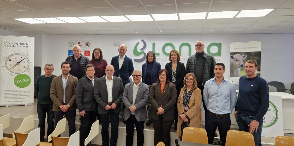 El consejero de Agricultura, Ganadería y Alimentación, la directora general de Promoción e Innovación Agroalimentaria y la Junta Directiva de la Lonja de Binéfar
