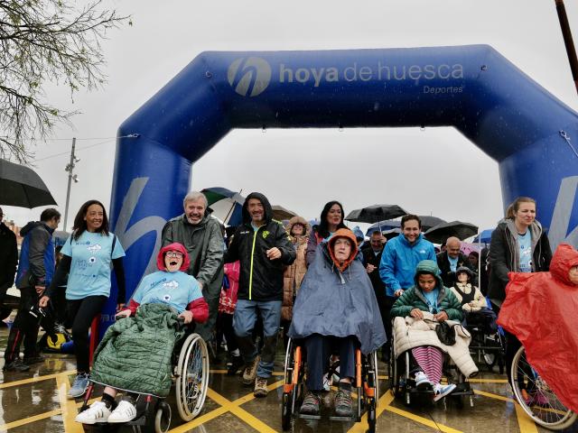 La XIV Marcha de Aspace Huesca ha cubierto su recorrido este domingo con récord de participantes a pesar de la lluviaFabián Simón